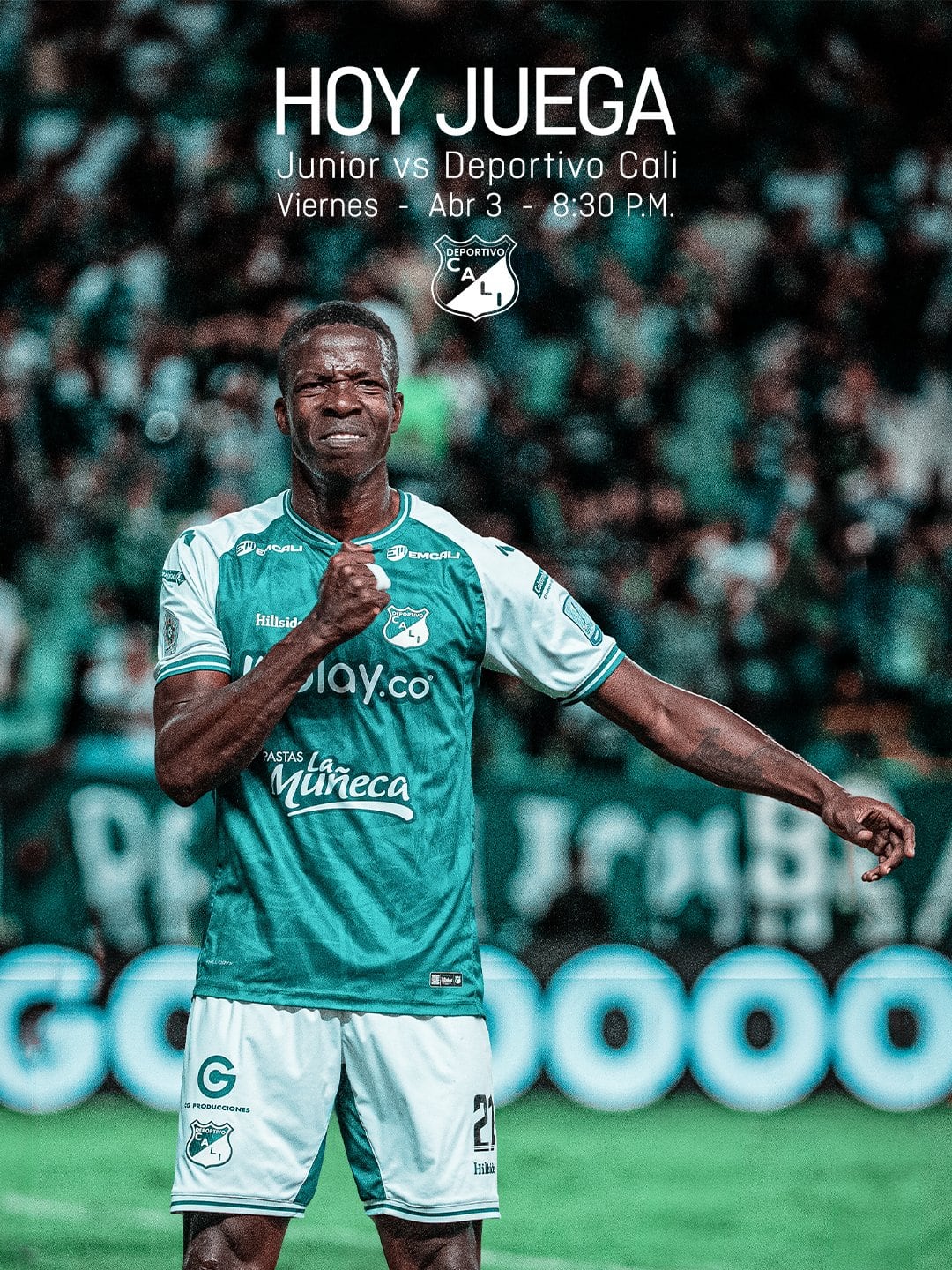 Afiche del Deportivo Cali con el defensor Julián Quiñones como protagonista